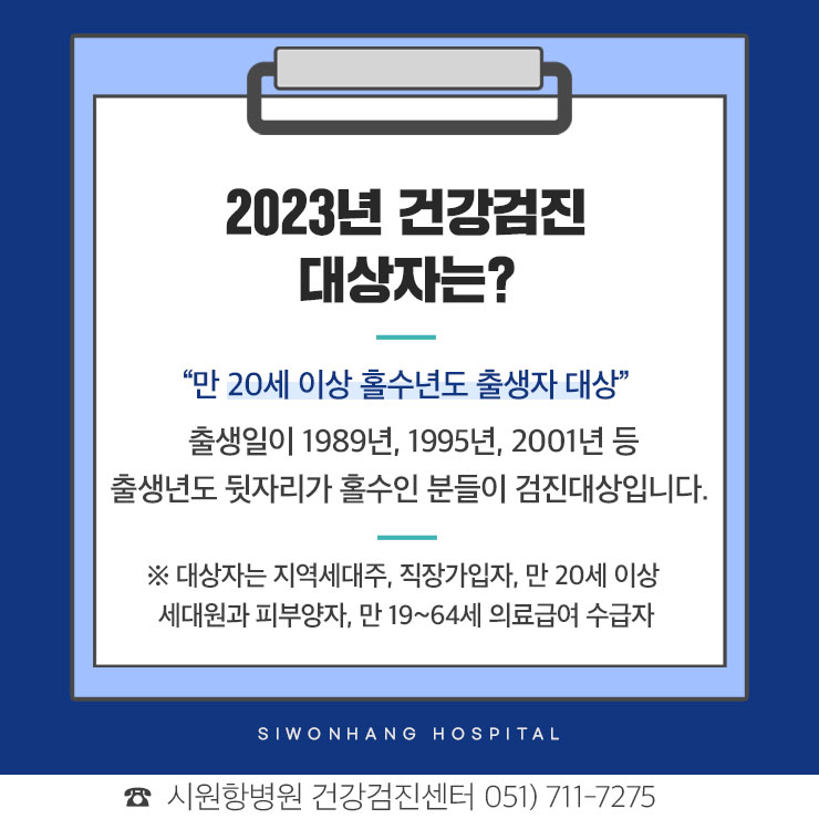 * 비사무직 종사자분들께서는 매년 검사를 받아보실 수 있습니다.